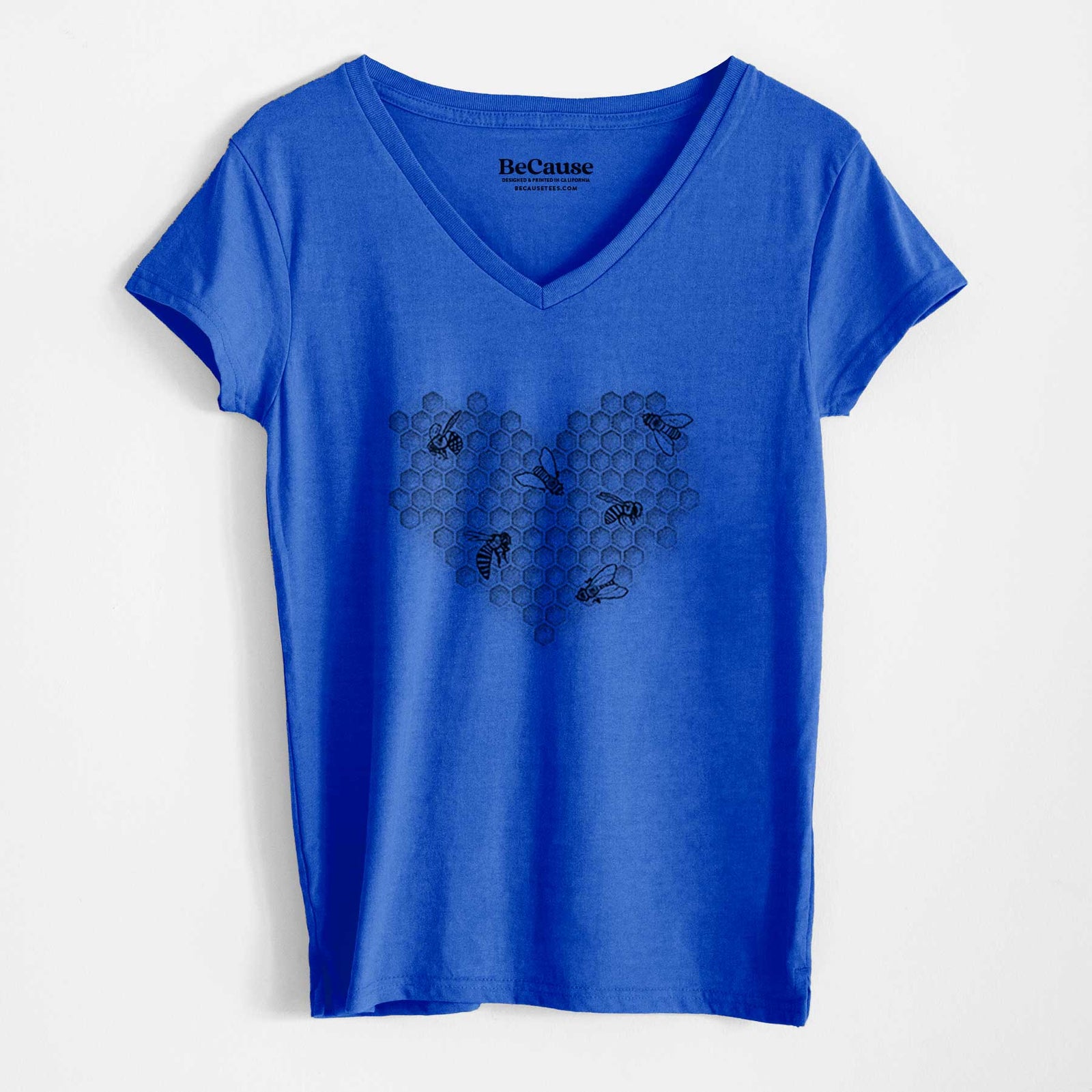 Honeycomb Heart with Bees - Women's 100% Recycled V-neck
